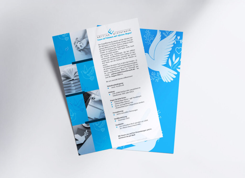 Die Dringlichkeit der Thematik hat uns als Verlag edition winterwork dazu inspiriert, eine Anthologie herauszubringen, in welcher der Frieden die Hauptrolle spielt.