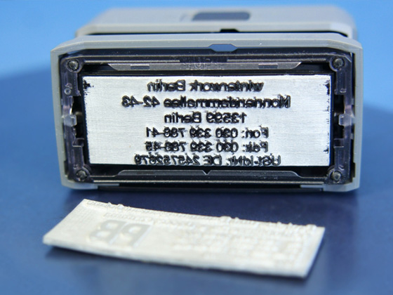 Die Abdruckplatten werden präzise gefertigt und sorgen für eine klare Darstellung von Texten und Logos.